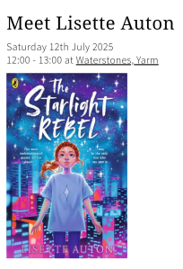 At 1.30pm Lisette will be signing ‘The Starlight rebel’ her infectious new future set adventure. No ticket or rsvp required for the signing. Copies will be available to buy on the day.