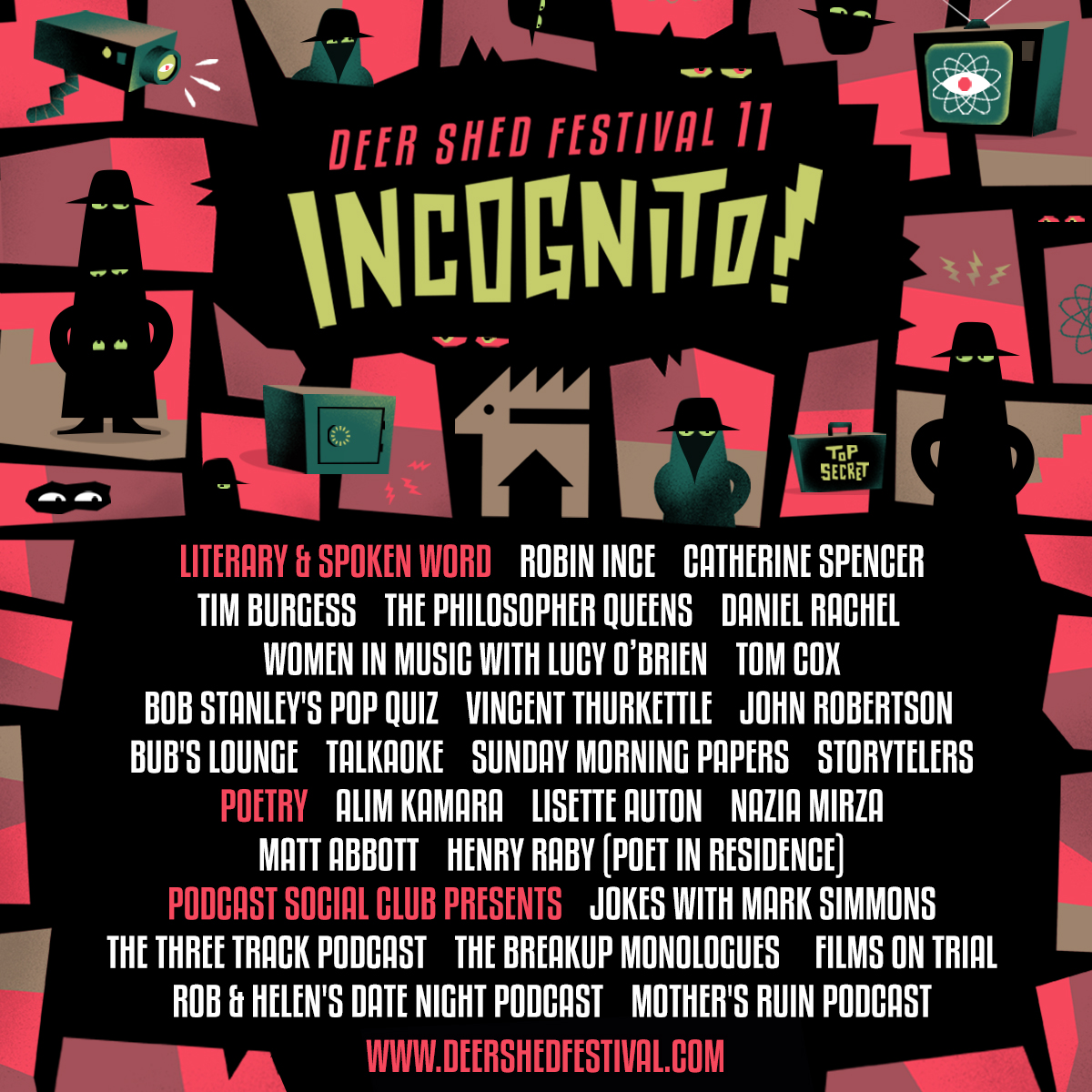 A poster in pinks and purples – Deer Shed Festivall 11 Incognito! There are a list of names, under the Poetry heading is my name.