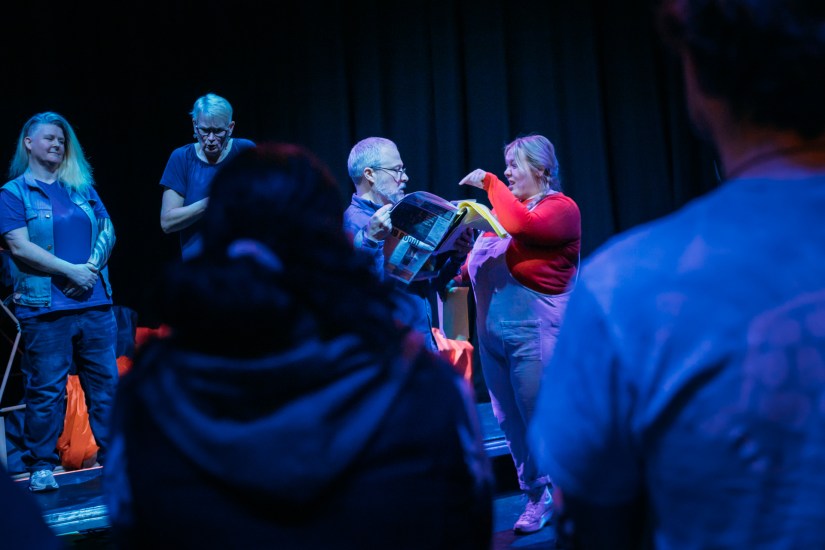 Night Classes brings together an award-winning creative team of co-writers Lisette Auton and Becci Sharrock, director Annie Rigby, designer Lady Kitt and performers Alex Elliott, EJ Raymond and Harrison Rowley-Lynn.