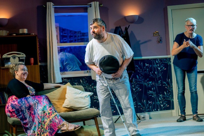 When disabled and non-disabled worlds collide, the consequences can be serious. Or they can be seriously funny. Peter and Rose are old Uni mates. Actually, more than mates. 21 years later, their lives converge once again, but for how long? The area around Rose’s flat is teaming with police. There’s been a serious incident. Surely the poor, vulnerable, inspirational disabled people can’t be involved? After a year of shielding, how far will Rose go to have Peter back in her life? What are two disabled people capable of when pushed too far? Chop, Dissolve, Burn is a black comedy that will have you squirming in your seat. This play relentlessly pokes fun at society’s attitudes towards disability, whilst exposing the terrifying truth about the impacts of inequality on disabled people’s lives. At its heart, Chop Dissolve, Burn is also a simple love story – two former lovers separated by circumstance and a hasty note written on the back of a receipt are brought back together by a pandemic. Do they risk a second chance? And how far will they go to be together again? Be prepared for macabre humour, the absurd, a guide dog with a taste for flesh, and a plant pot.